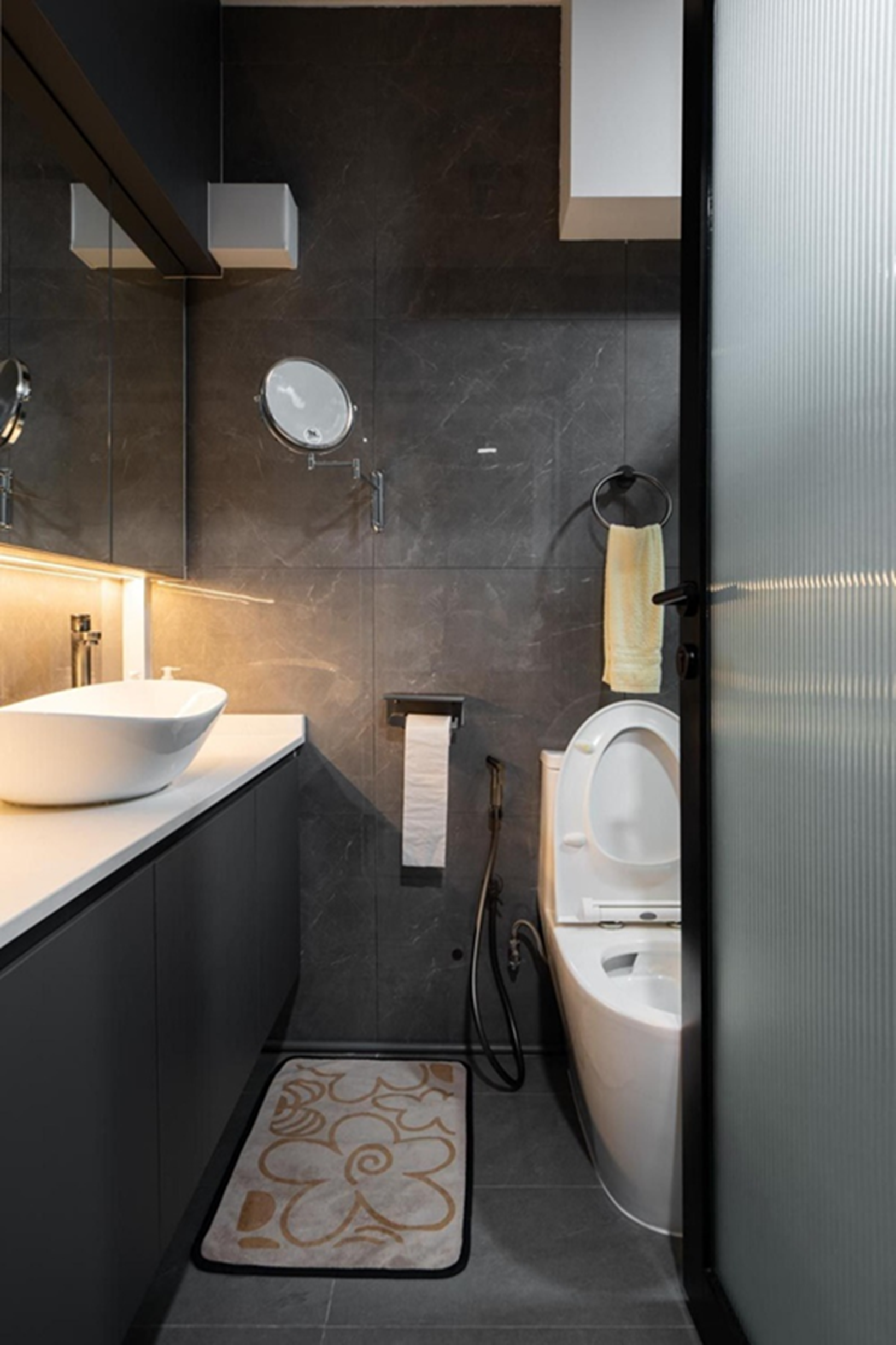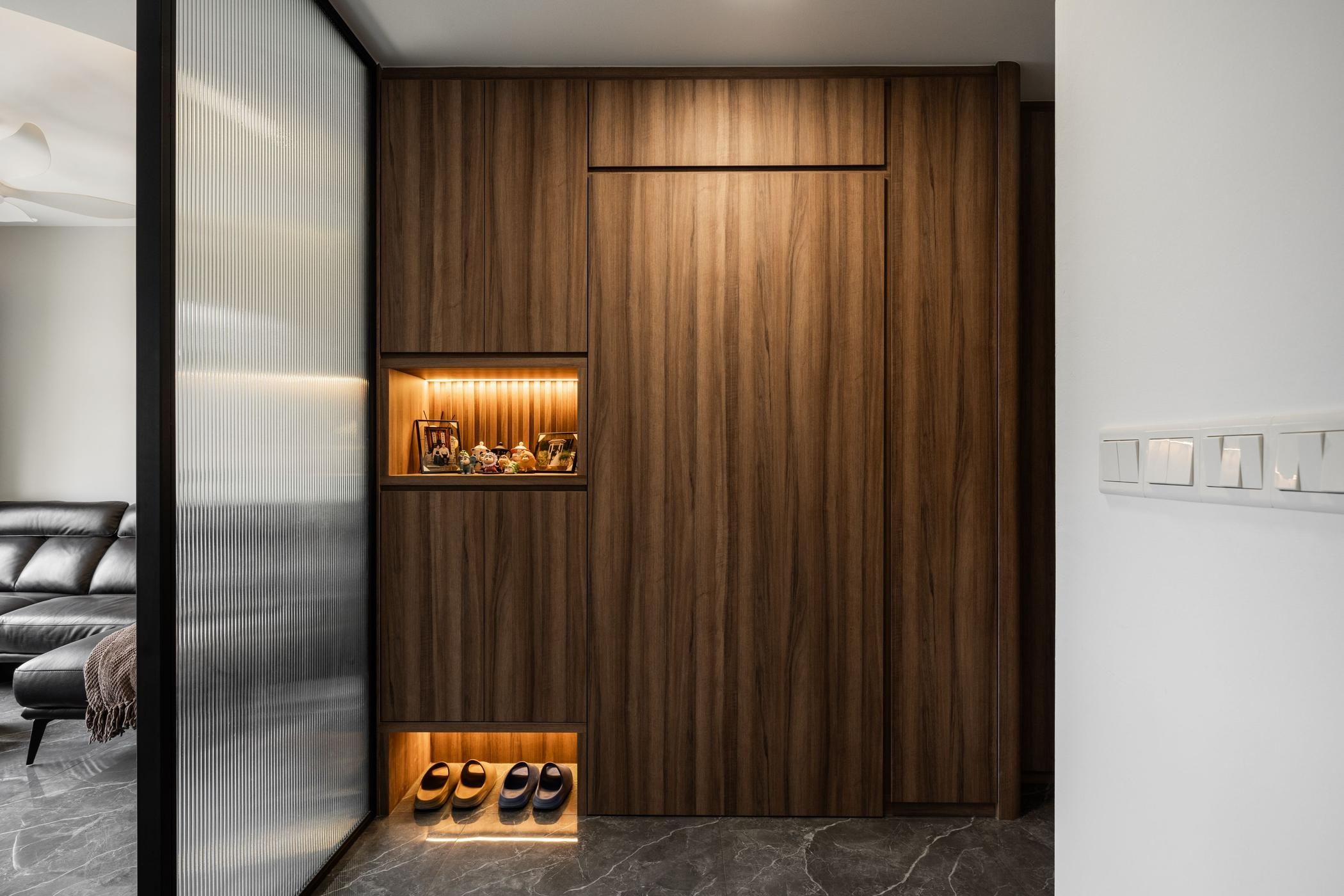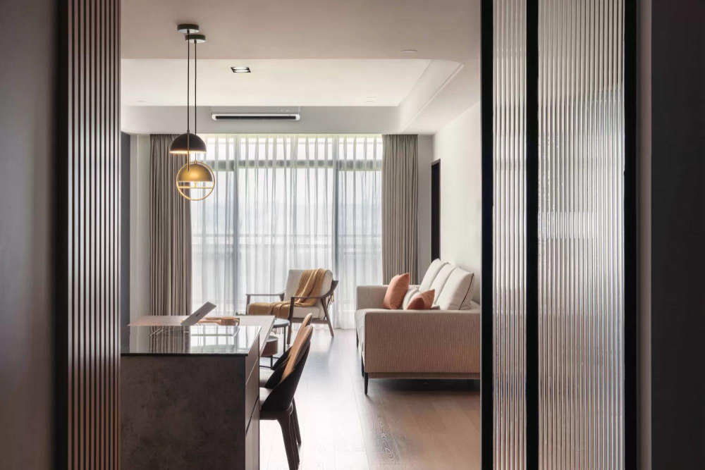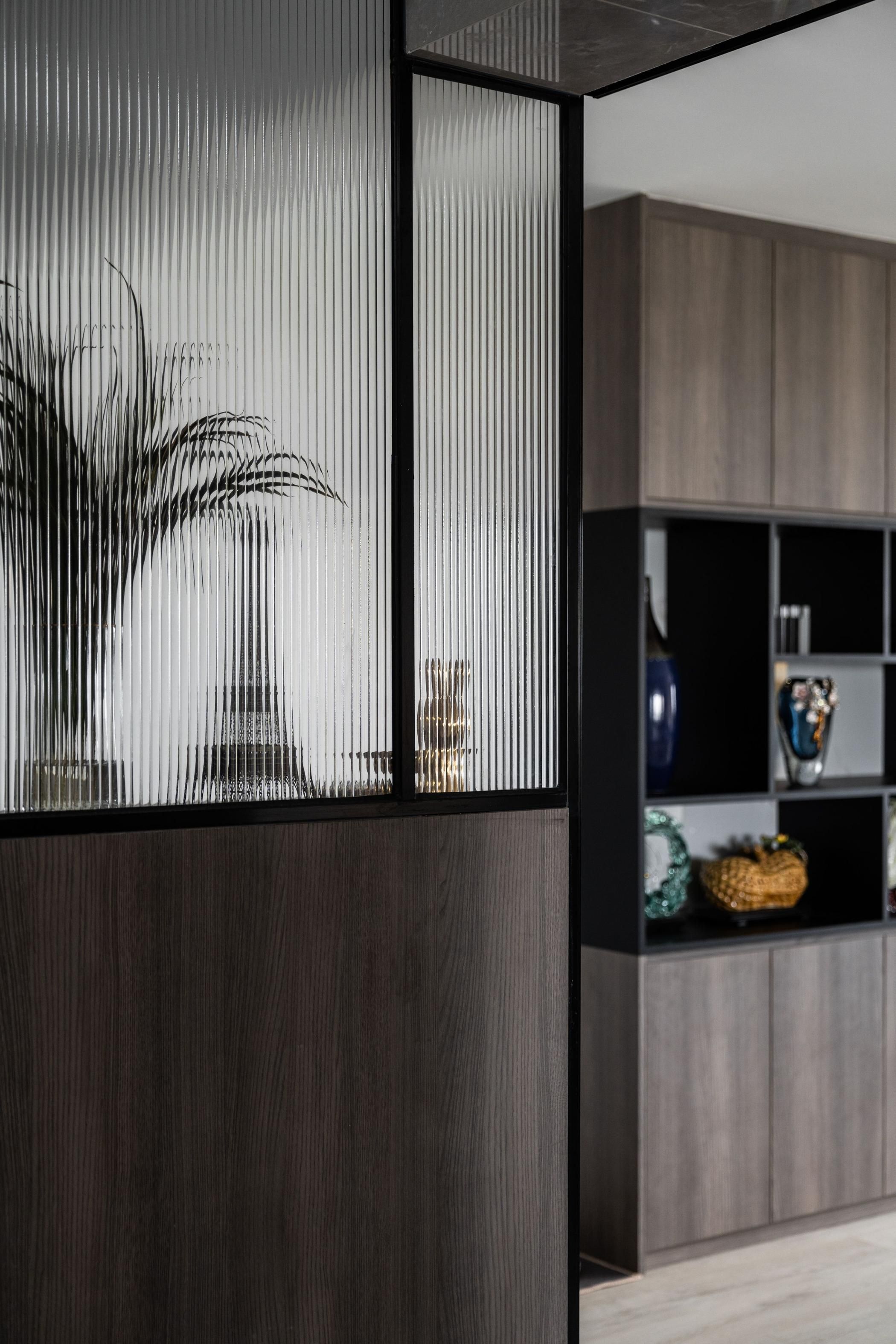 Fluted glass isn't limited to just doors and partitions. It can also be used as a stunning visual element. Create a statement wall in your living area or bedroom using fluted glass panels. This adds a unique textural element and bounces light around the room, creating a sense of spaciousness.