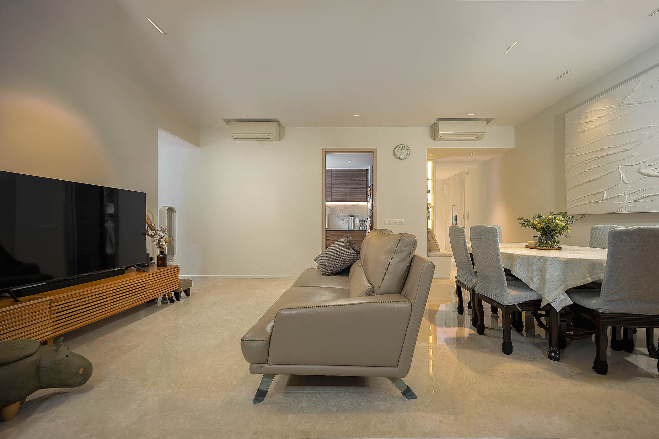 The concept of a modern home interior is grounded in its earthy colours, clean lines, and natural materials. For this modern style house, our team of designers used a lot of whites and woods as its basic colours and incorporated a good deal of natural light, making the space feel airy and spacious. Taking pride in our superior workmanship and sharp attention to detail, all of our wet works, constructions, and products that roll out of our factory are top-quality and fashioned with precision to inch-perfect standards.