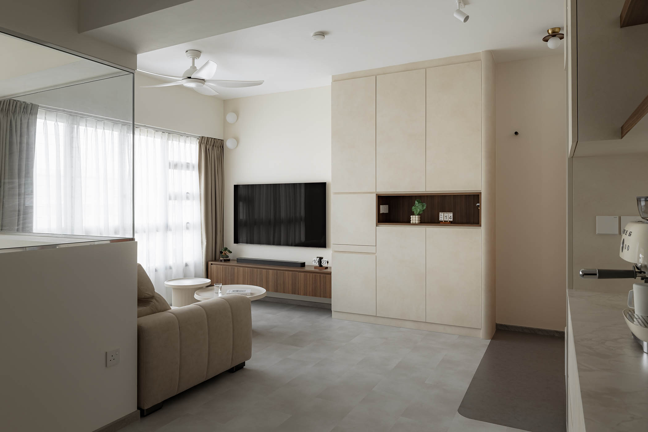 This home embraces a modern minimalist aesthetic defined by clean lines, muted tones, and a focus on functionality. The design creates a serene, clutter-free environment that balances simplicity with comfort.