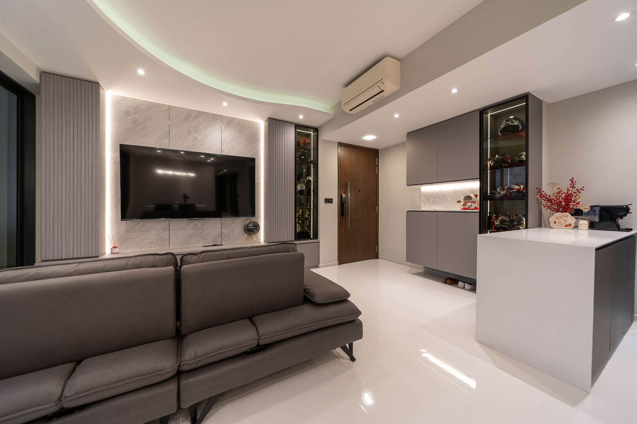 This modern condominium project embodies a seamless blend of functionality and refined aesthetics, designed to cater to a sophisticated urban lifestyle. The interior showcases a carefully curated palette of neutral tones, sleek textures, and integrated lighting to create a cozy yet upscale ambiance. The open-concept layout enhances spatial flow, maximizing natural light while maintaining a sense of privacy. Every design element has been thoughtfully selected to balance comfort with contemporary elegance, resulting in a stylish and inviting home.