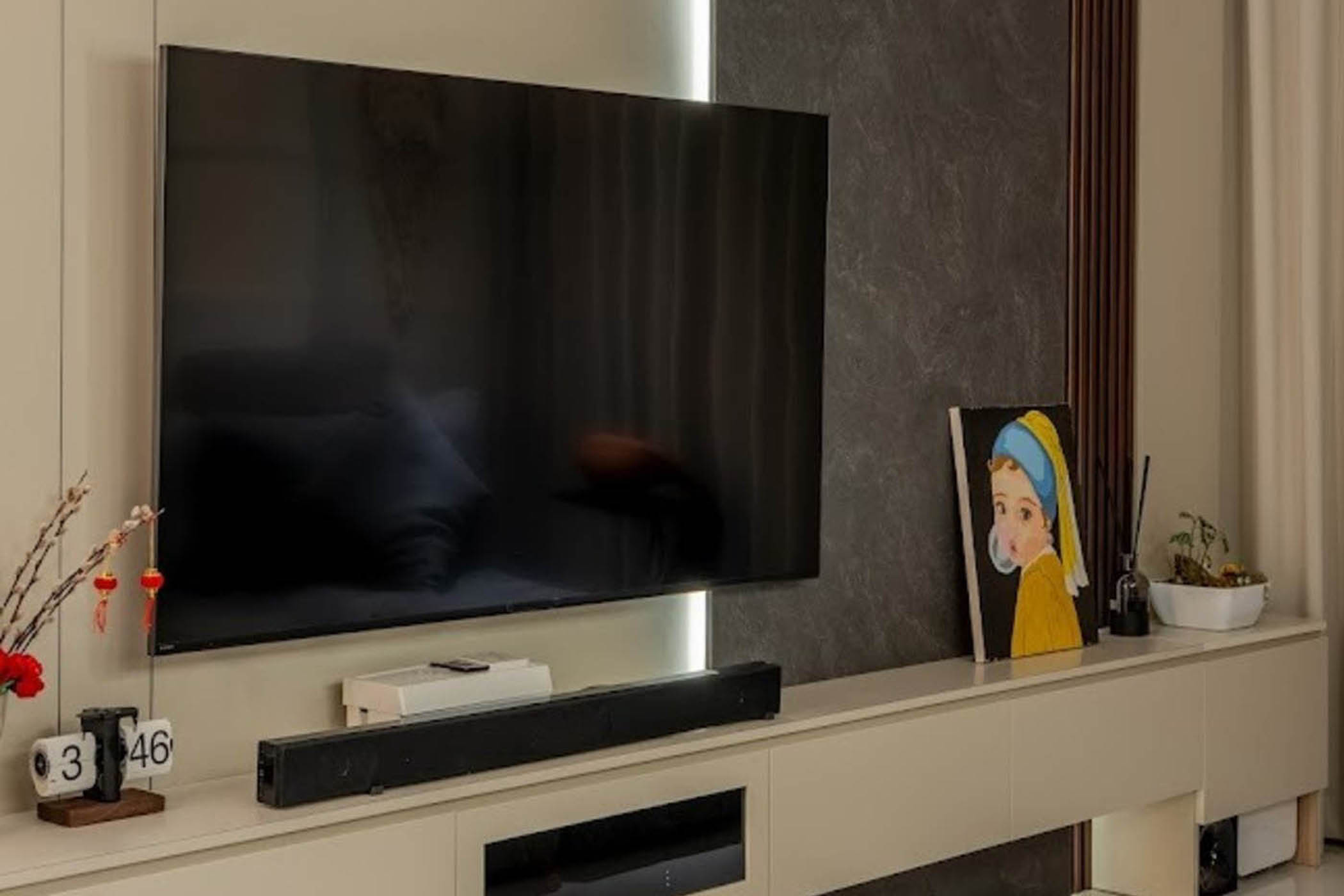 The design emphasises visual openness through the living and dining areas, with custom carpentry and display elements integrated into the space to serve both functional and aesthetic purposes. Soft lighting, curved forms and a neutral base palette create a warm and inviting atmosphere, while accent colours and feature pieces introduce a sense of personality and playfulness. The result is a thoughtfully designed home that maximises space and comfort within a compact layout.