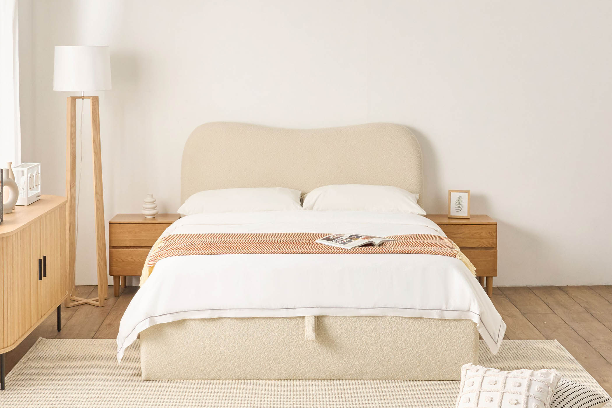 Introducing Arianna: where luxury meets simplicity, with soft curves, plush organic silhouette, and a functional lift-up storage bed that elevates both style and function.